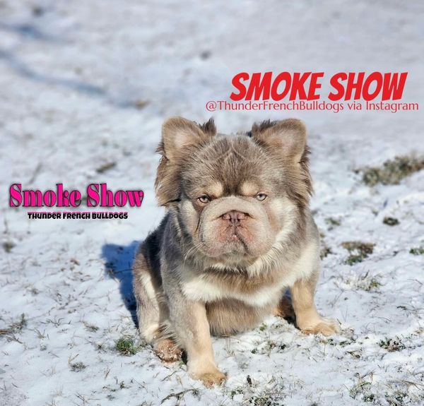 "Smoke Show" is a Isabella Big rope Fluffy French Bulldog. We do not own "Smoke Show" He's owned by @ThunderFrenchBulldogs on Instagram. We have "Smoke Show" offspring in our program through a stud fee partnership. He has been paired with our "LadyBug" to produce beautiful pups.