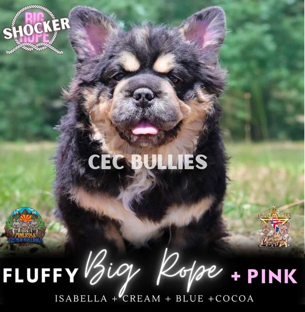 This is "Trademark" he's a Rojo & Tan BigRope Fluffy French Bulldog. We do not own him He's owned by @ToyFrenchies on Instagram. We have his offspring in our program through a stud fee partnership. He has been paired with "Lola" to produce beautiful big rope fluffy pups.